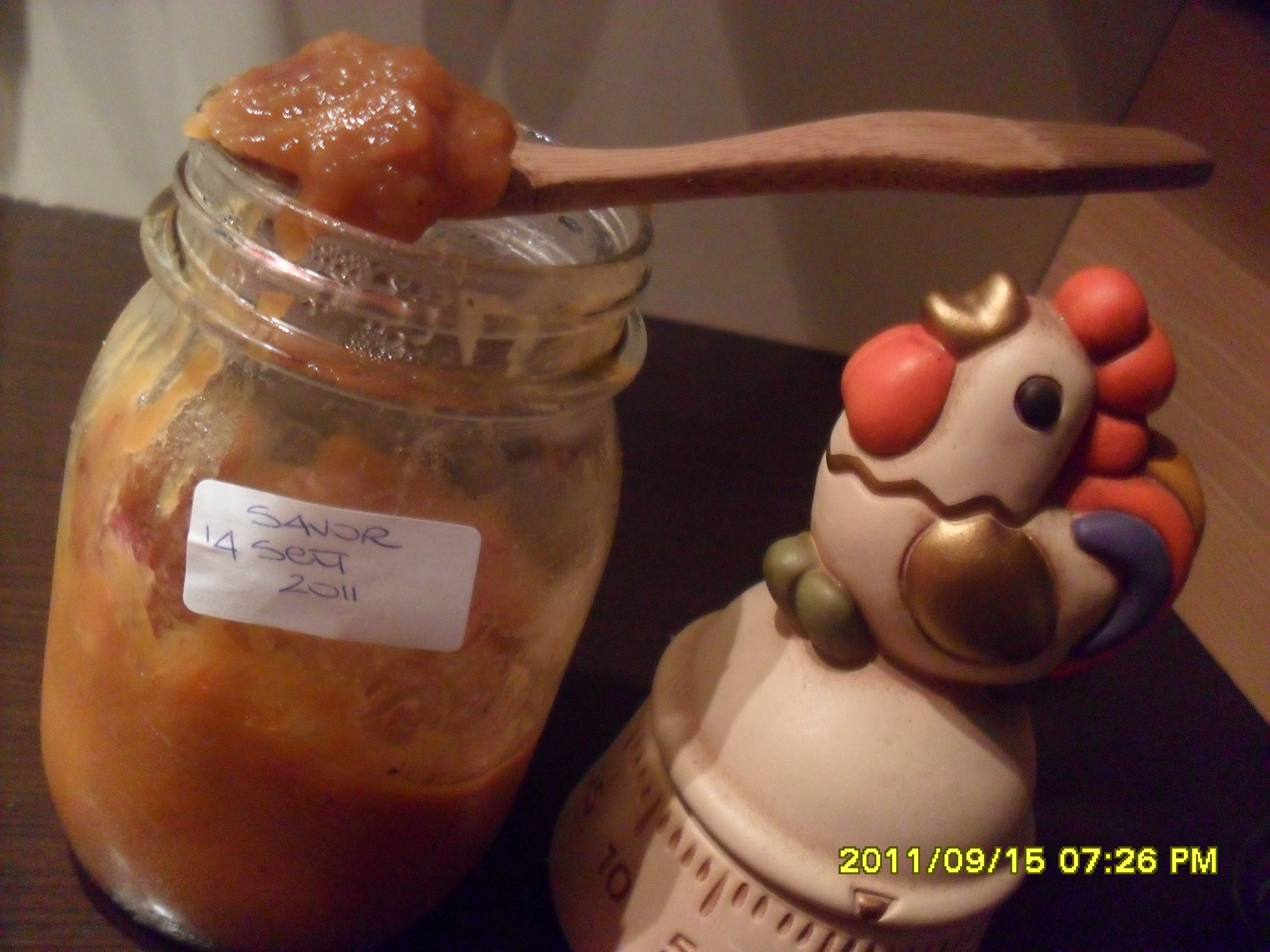 "coperchio chiuso" la frutta tagliata a cubotti,il limone,lo zucchero,il mosto e la frutta secca.Cuocere appoggiando il cestello al posto del misurino per evitare gli schizzi 1 ora 100°