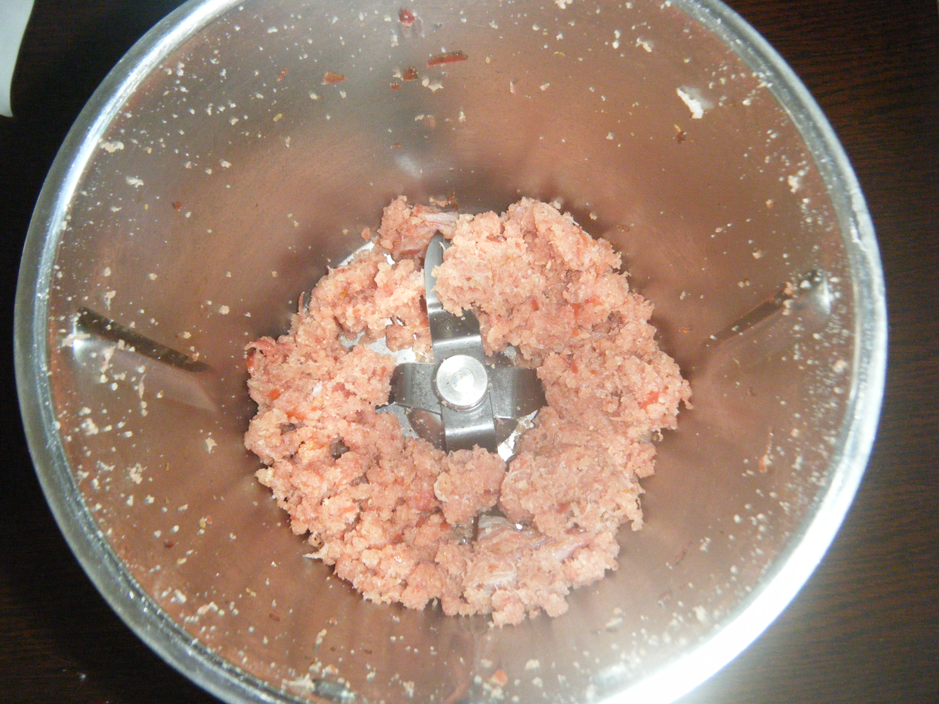 3- raccogliere con la spatola, aggiungere lo speck: 1 min. vel.4.