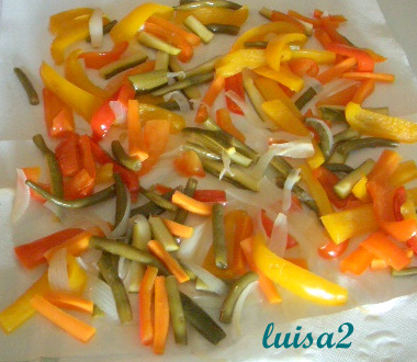 preparare tutte le verdure a bastoncini (il peso indicato è su verdure già pulite)