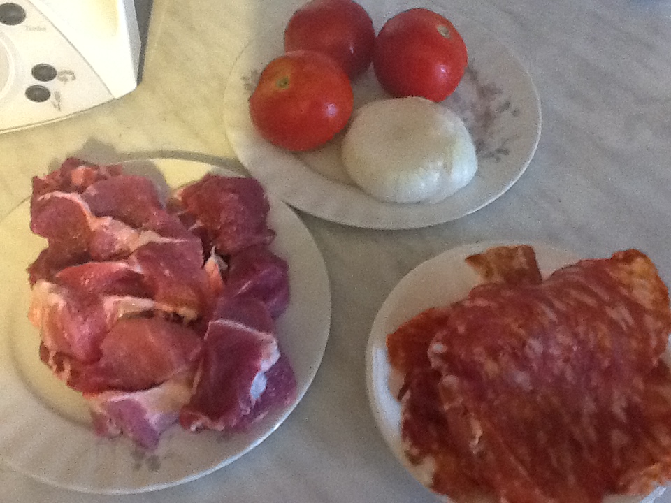 -Unire alla carne i fagioli e continuare la cotture 5min. /temp. Varoma/antiorario"antiorario" /velocità soft"velocità soft" .