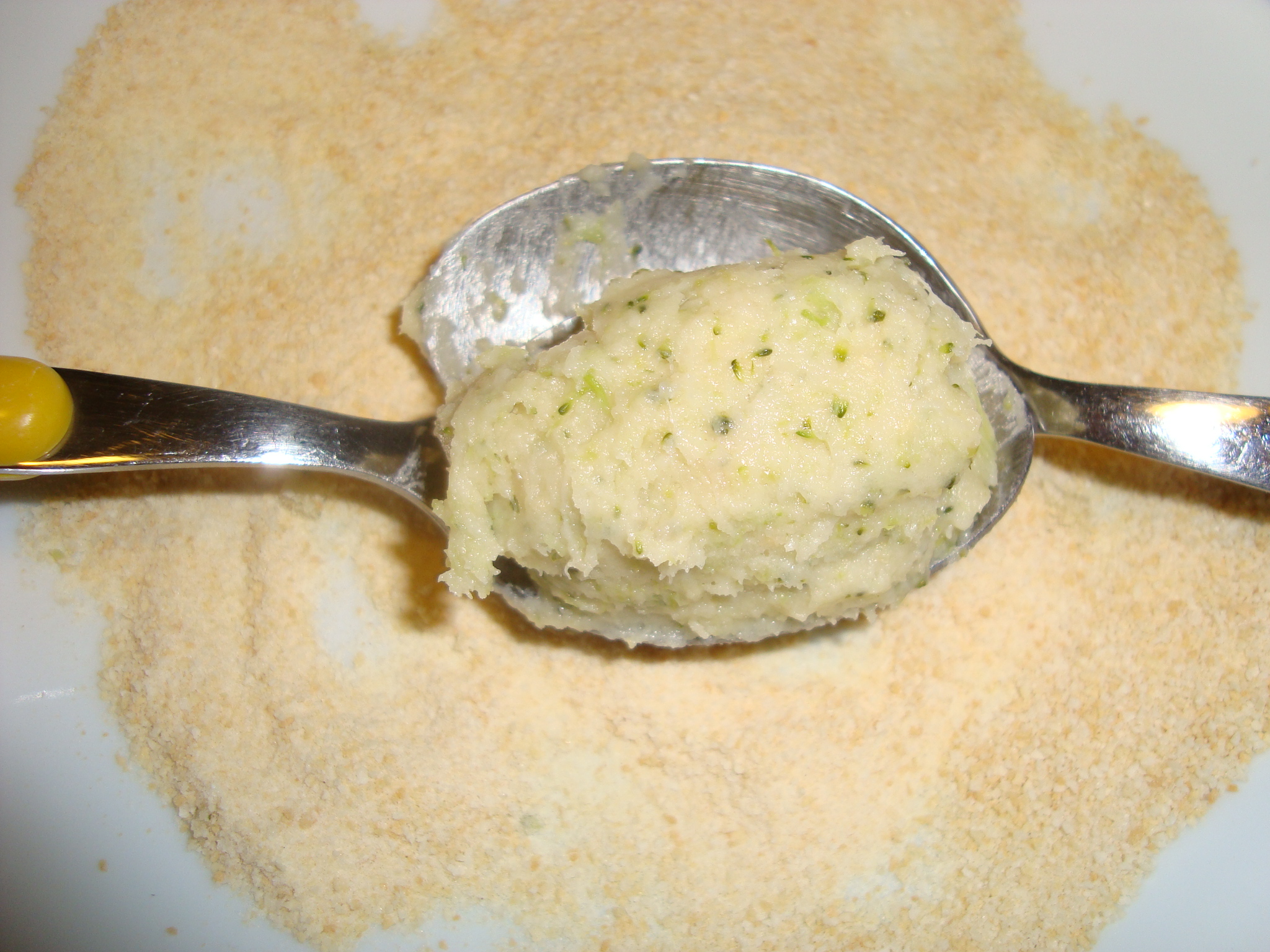 Aiutatevi con due cucchiai o con le mani e fare rotolare il pezzetto di impasto in un piatto con pangrattato.