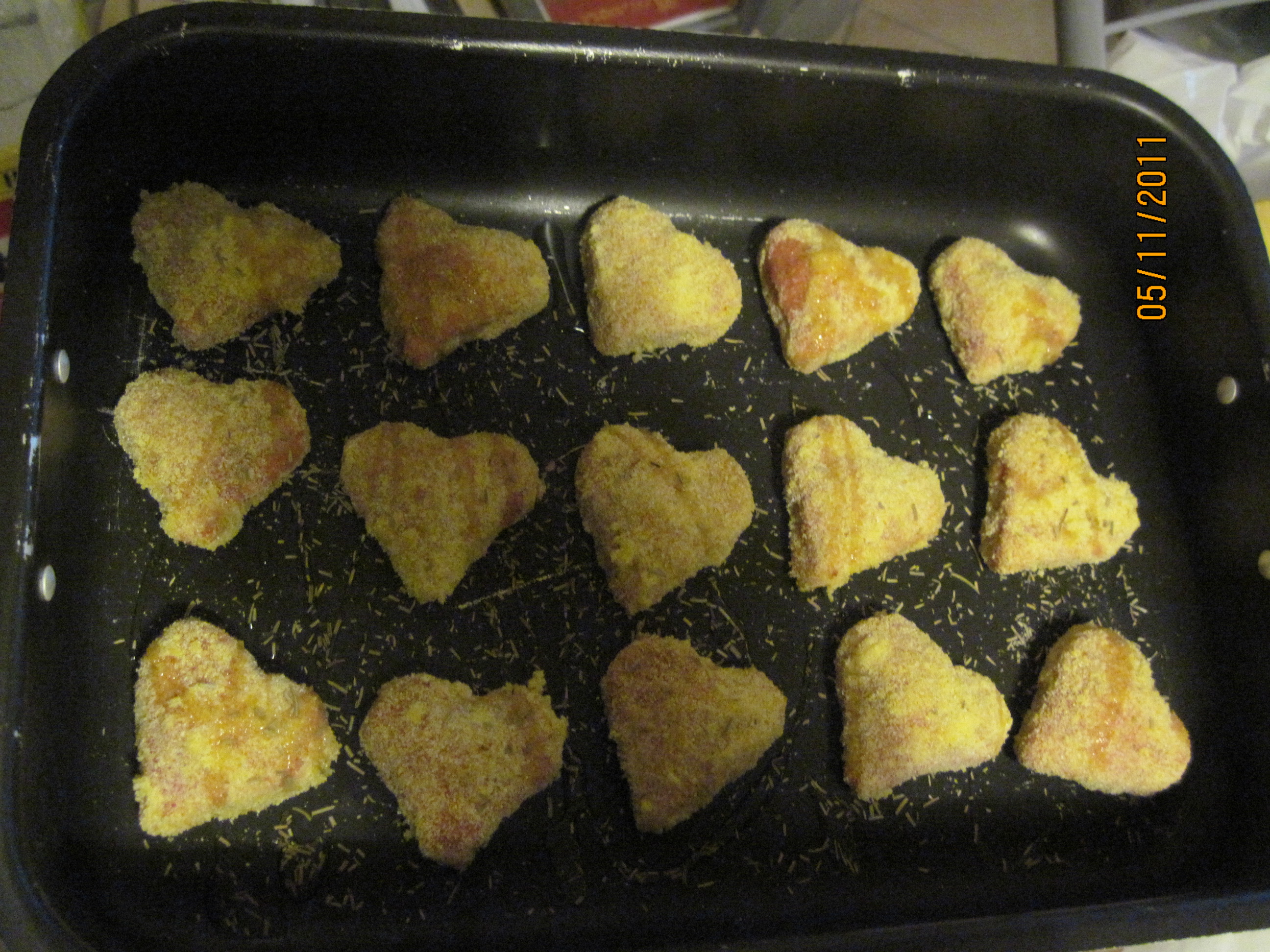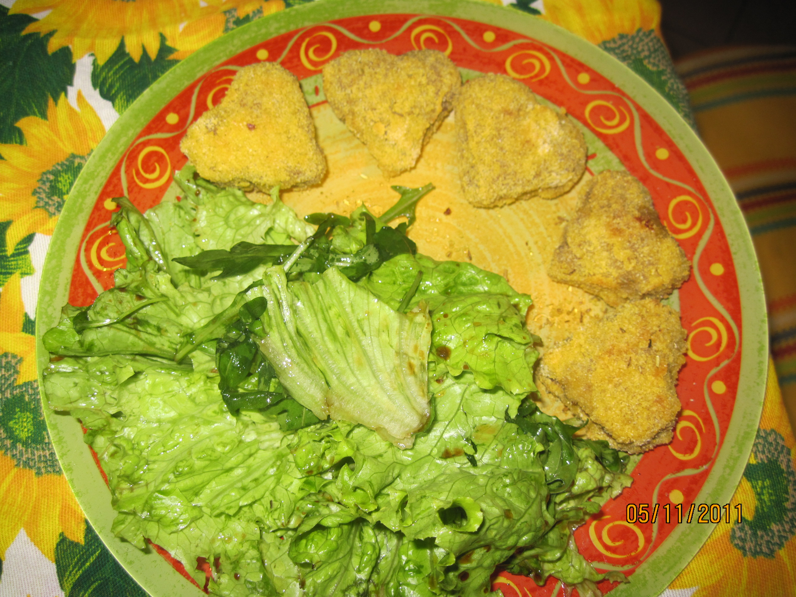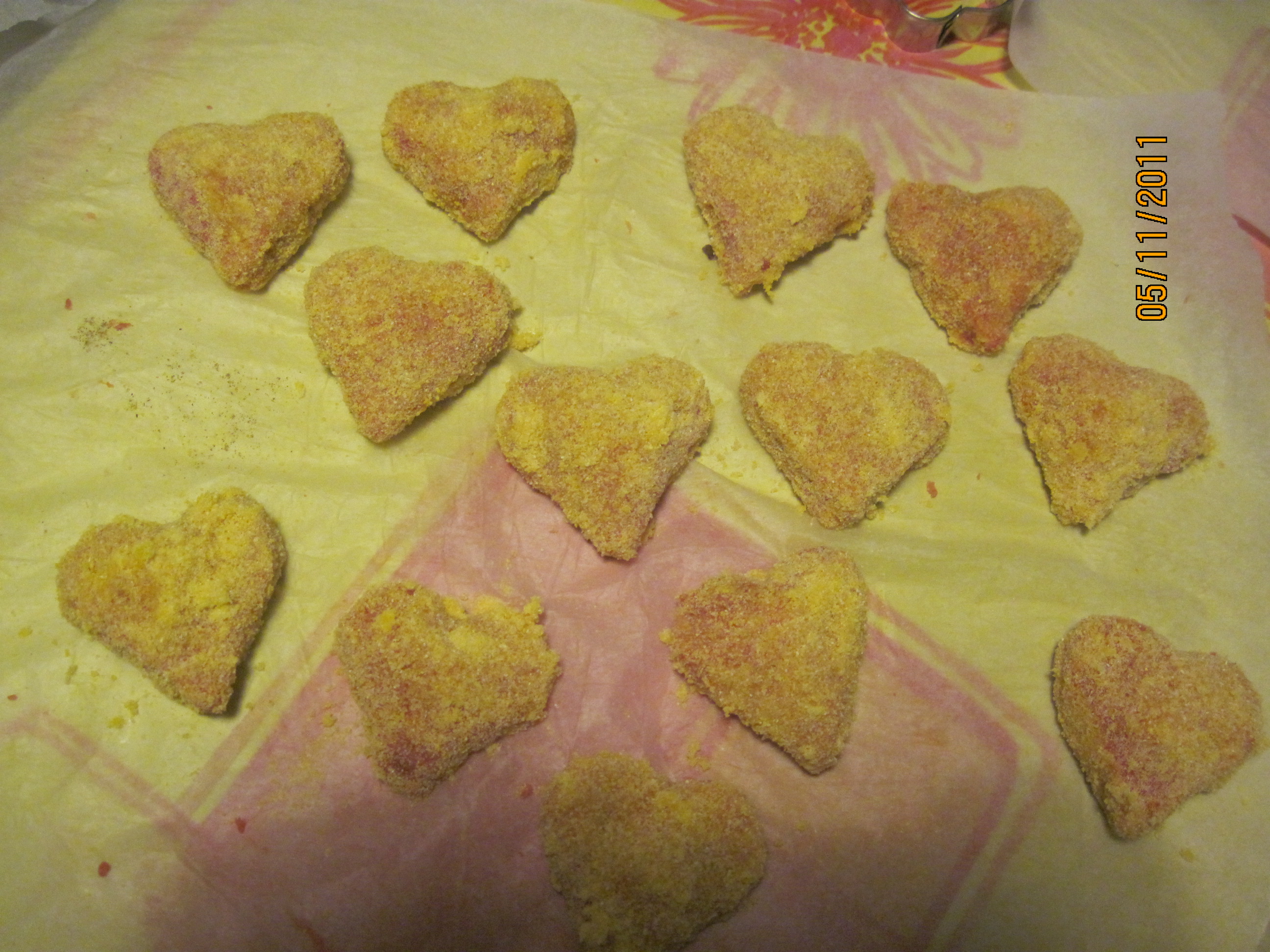 Salare l'uovo sbattuto e passarvi dentro i cuori che successivamente verranno passati nella farina di polenta. (Per una impanatura più corposa si possono ultetriormente ripassare nell'uovo e poi nella farina di polenta).