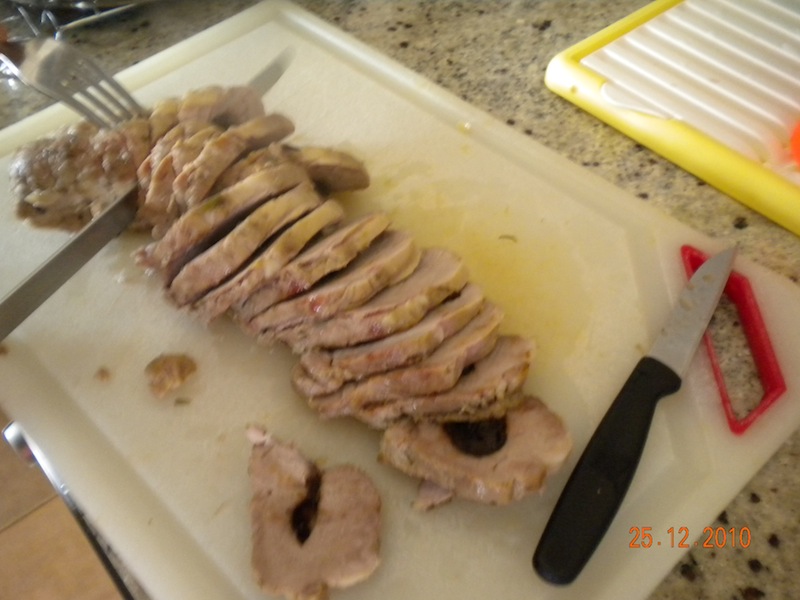 Steccate il filetto con le prugne secche strizzate, alternate con pistacchi e pinoli. Riempite bene il filetto.