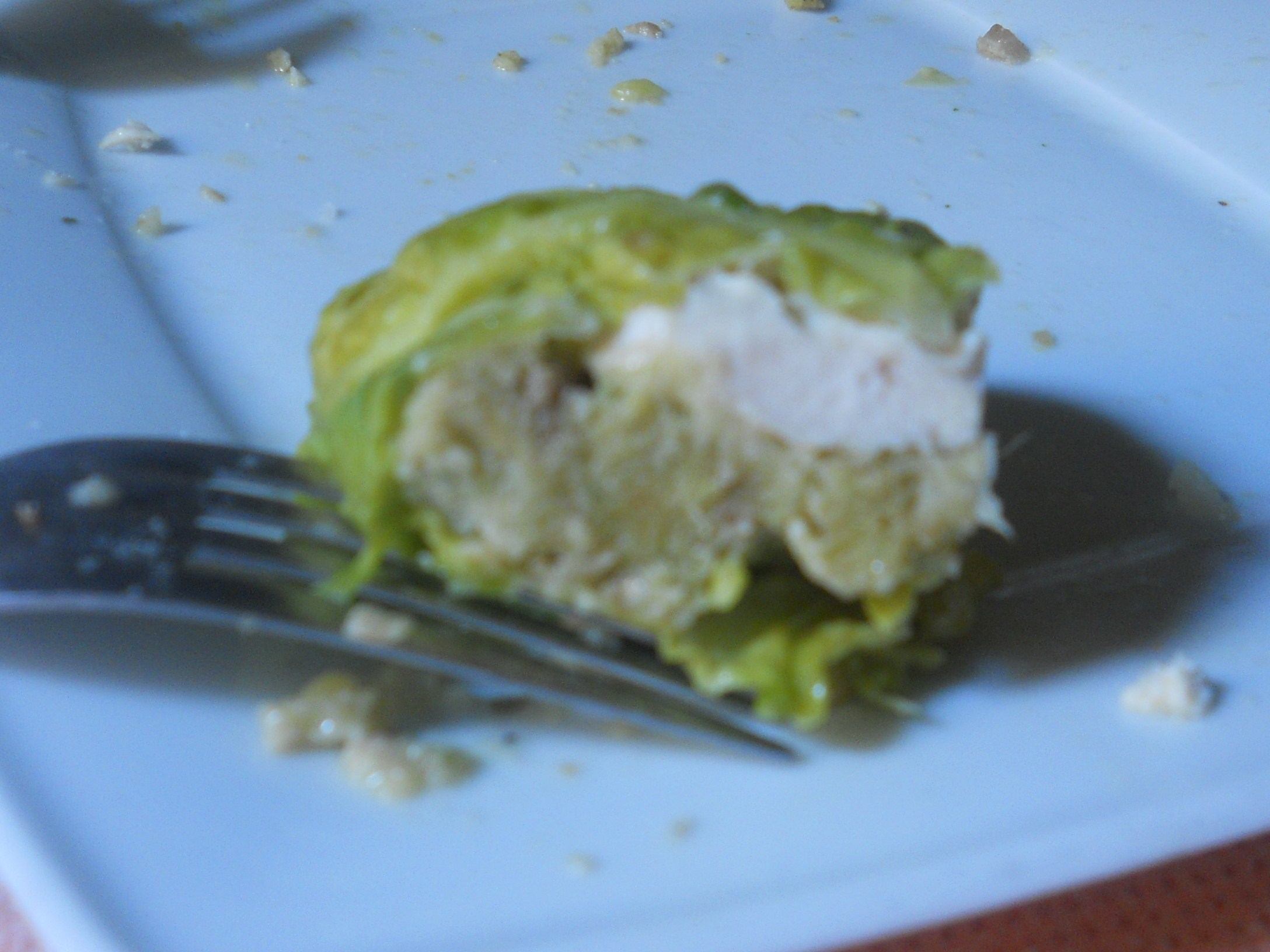 "coperchio chiuso" asciutto lo scalogno e l'olio 3 minuti, velocità 4, 100°. Unire il parmigiano, il pane e il prezzemolo precedentemente tritati, i funghi, l'uovo, il sale e il pepe e far andare 10 secondi velocità 4. Il composto deve risultare morbido, ma non molliccio.Prendere le foglie di verza asciutte, stenderle e adagiarvi sopra le fettine di petto di pollo, un pugnettino di ripieno, chiudere a fagattino le foglie, magari aiutandosi con lo spago da cucina e sistemare sul varoma. Nel