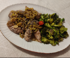 Filetti di pollo con sedano, zenzero, semi di papavero e sesamo (senza glutine) con contorno di broccoli