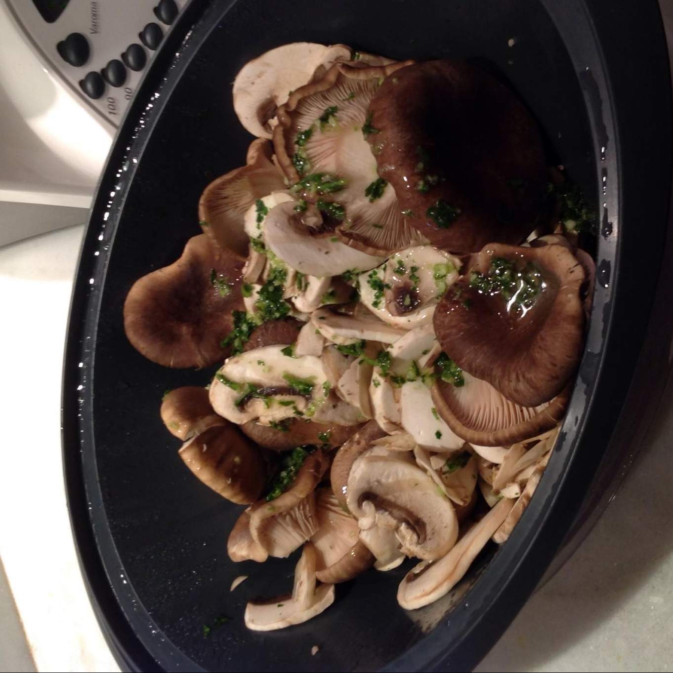 2. spennellato di dado bimby e una parte dell aglio e prezzemolo già tritato in precedenza irrorare con un filo d olio evo.