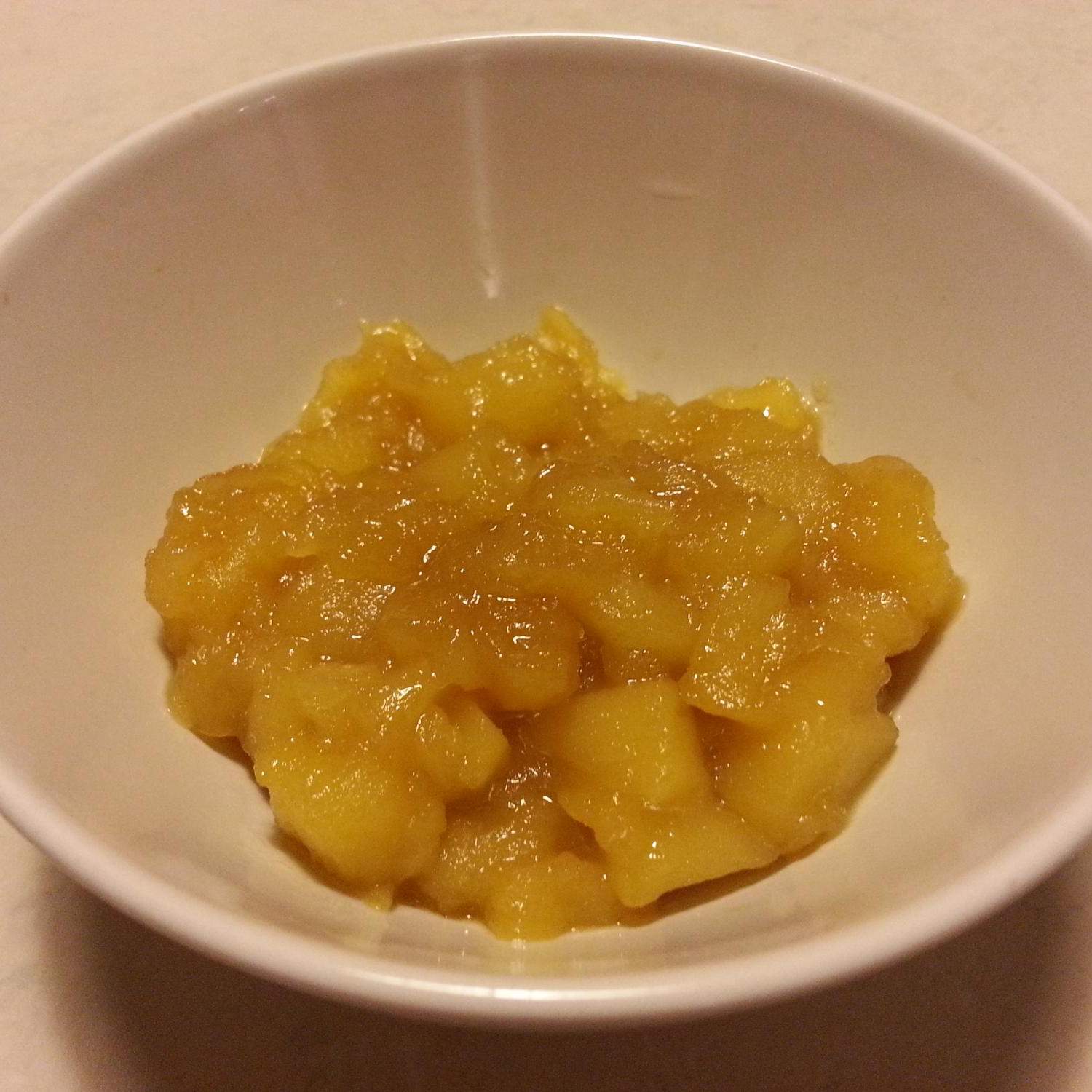Sbucciare la mela e tagliarla a pezzetti, sciogliere nel