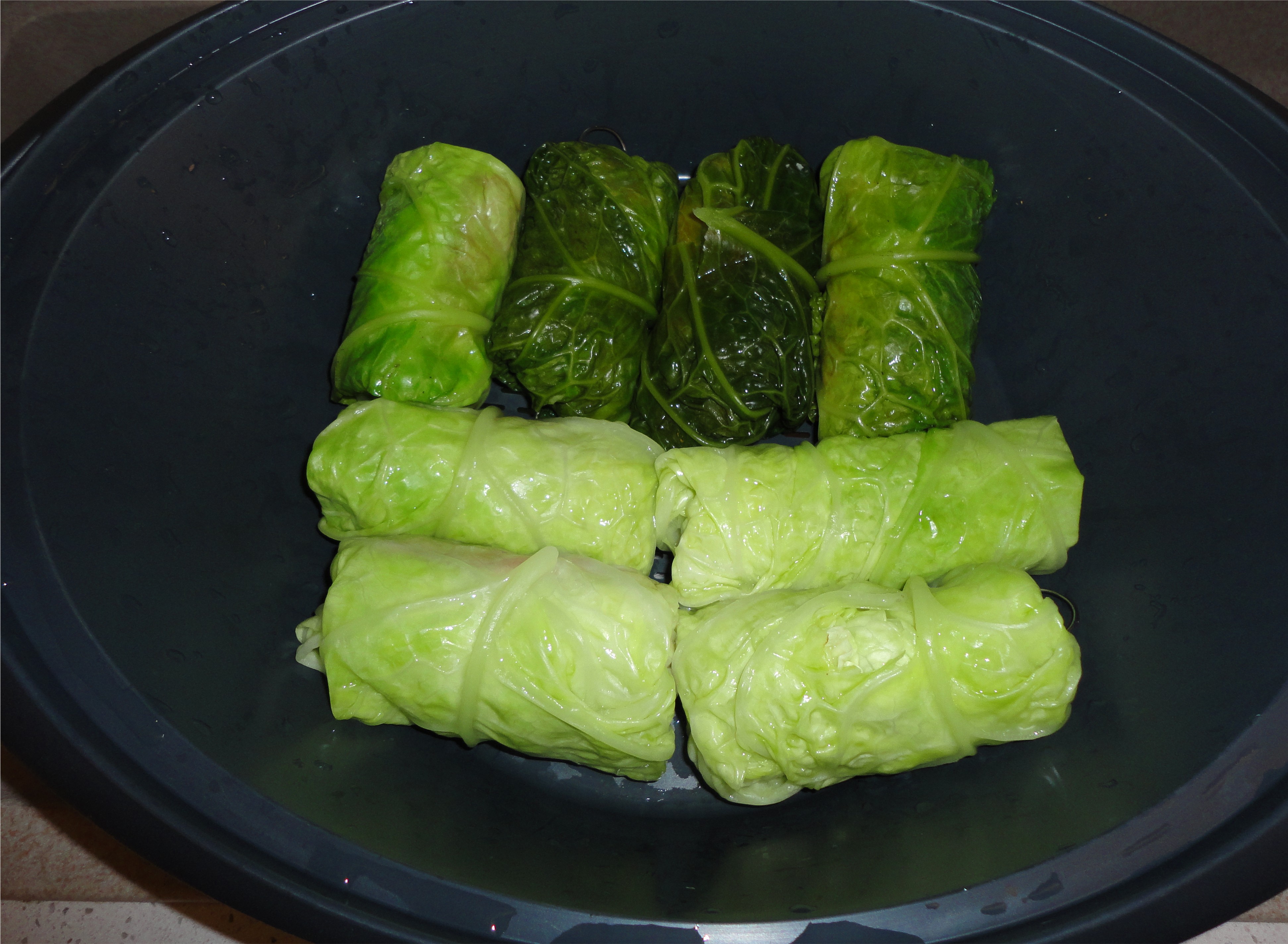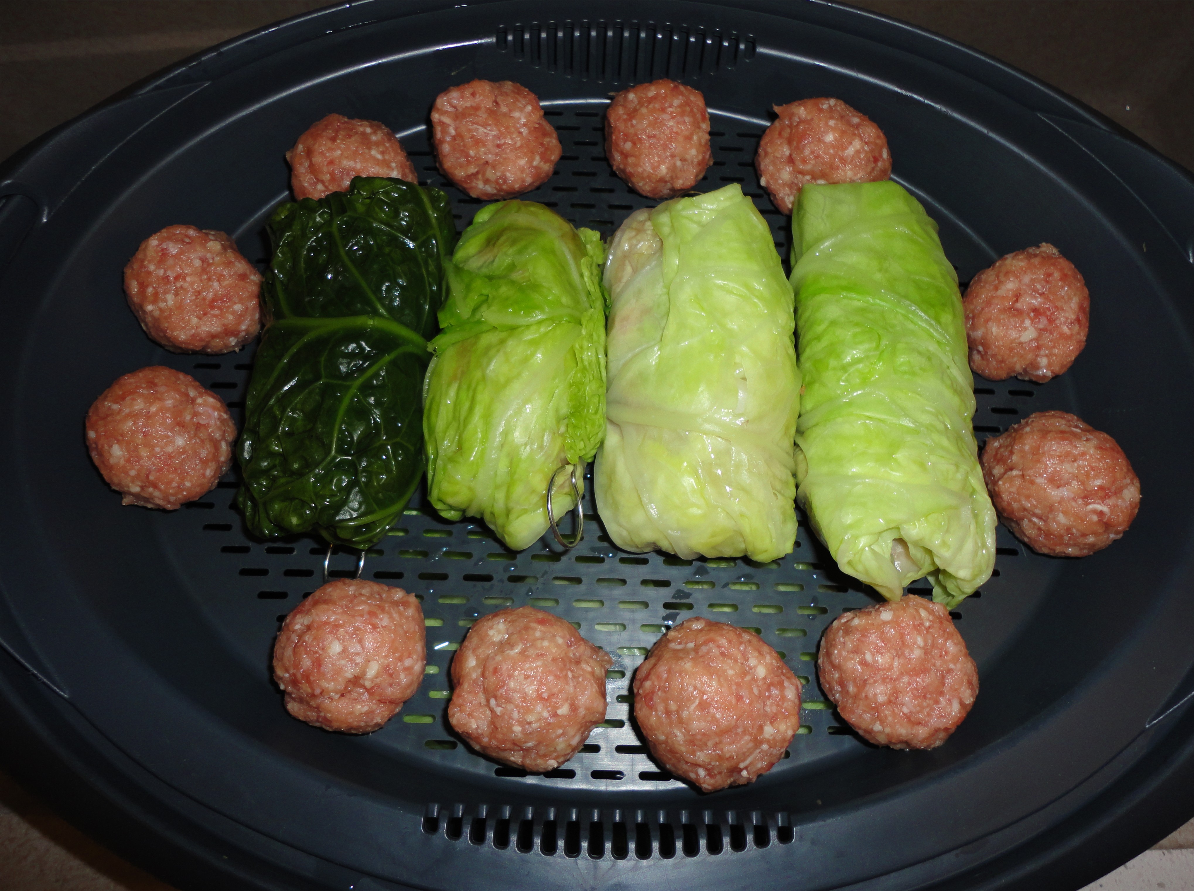 - Se avanza la carne formare polpettine piccole e metterle nel vassoio intorno agli involtini di verza.