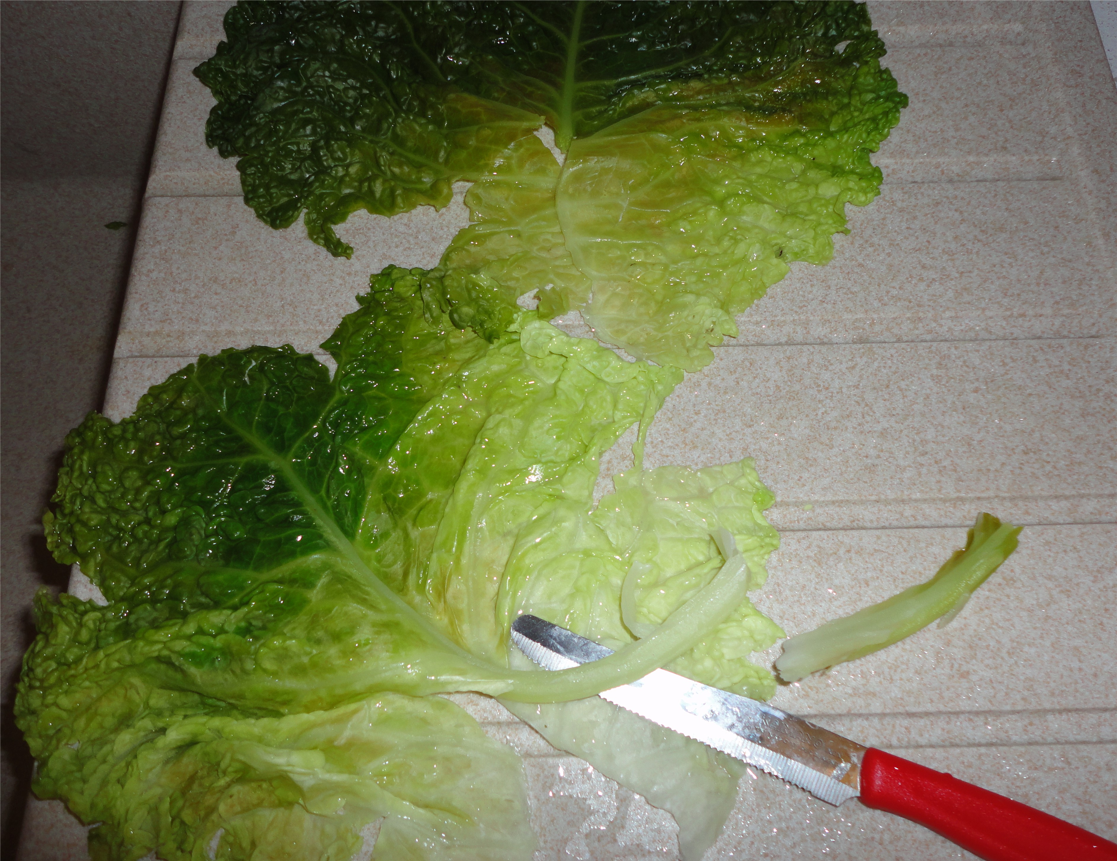 - Far raffreddare le foglie di verza e togliere la parte dura.