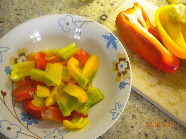 "antiorario" , sfumando con il vino a metà cottura; - Preparate nel frattempo i peperoni colorati a pezzi;
