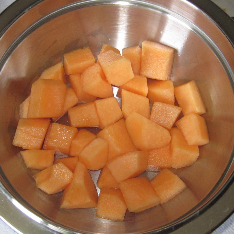 "velocità soft" Trasferire il pollo nella ciottola con il melone, lasciar intiepidire e servire