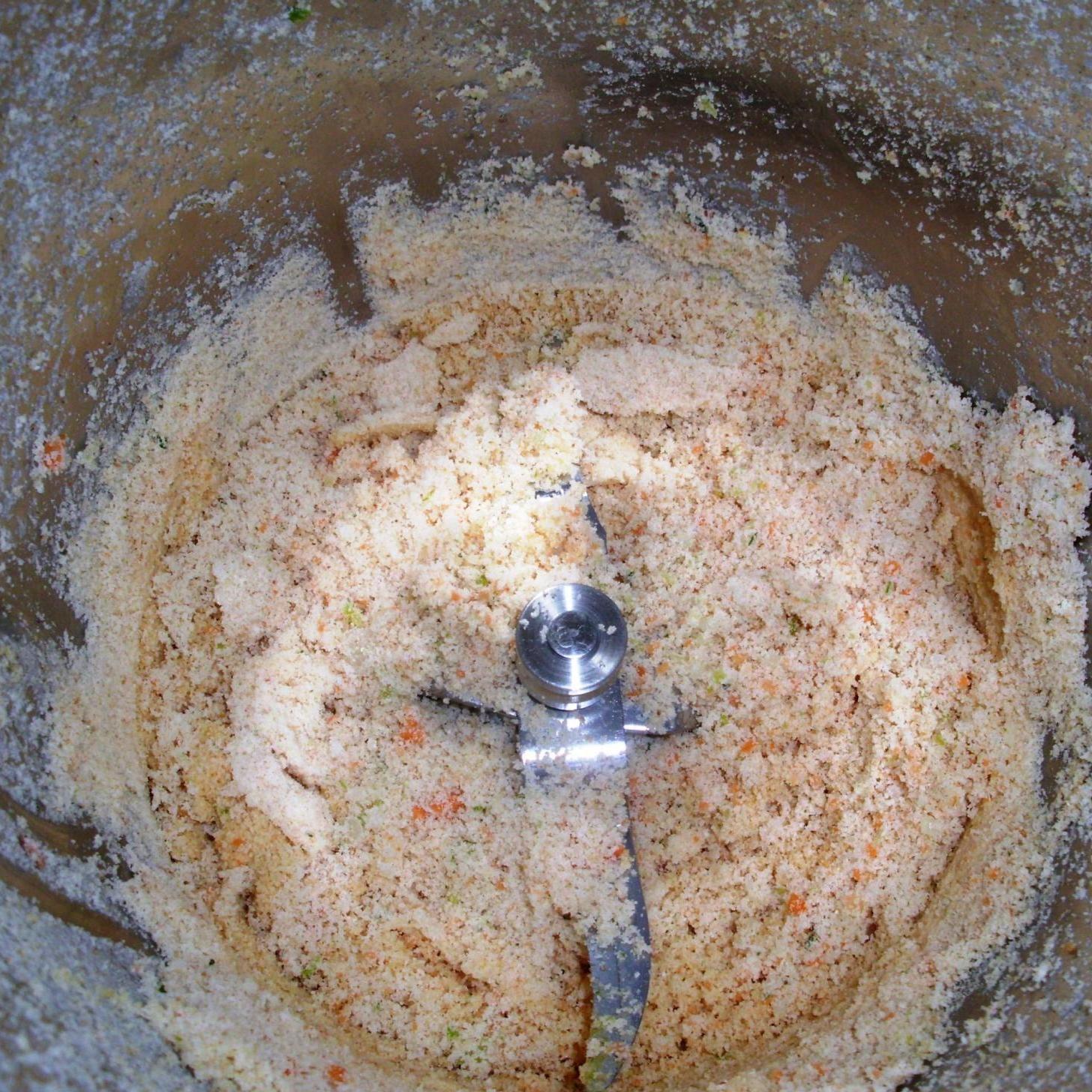 "coperchio chiuso" il pane, grattuggiare:10 sec. vel. 8.Aggiungere le verdure, tritare: 5 sec. vel.7,