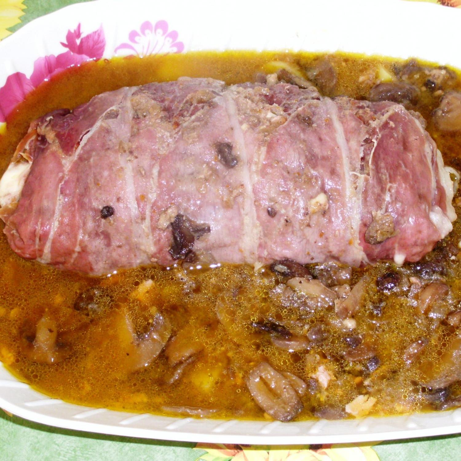 A fine cottura, disporre il polpettone su un piatto da portata, contornare con i funghi,