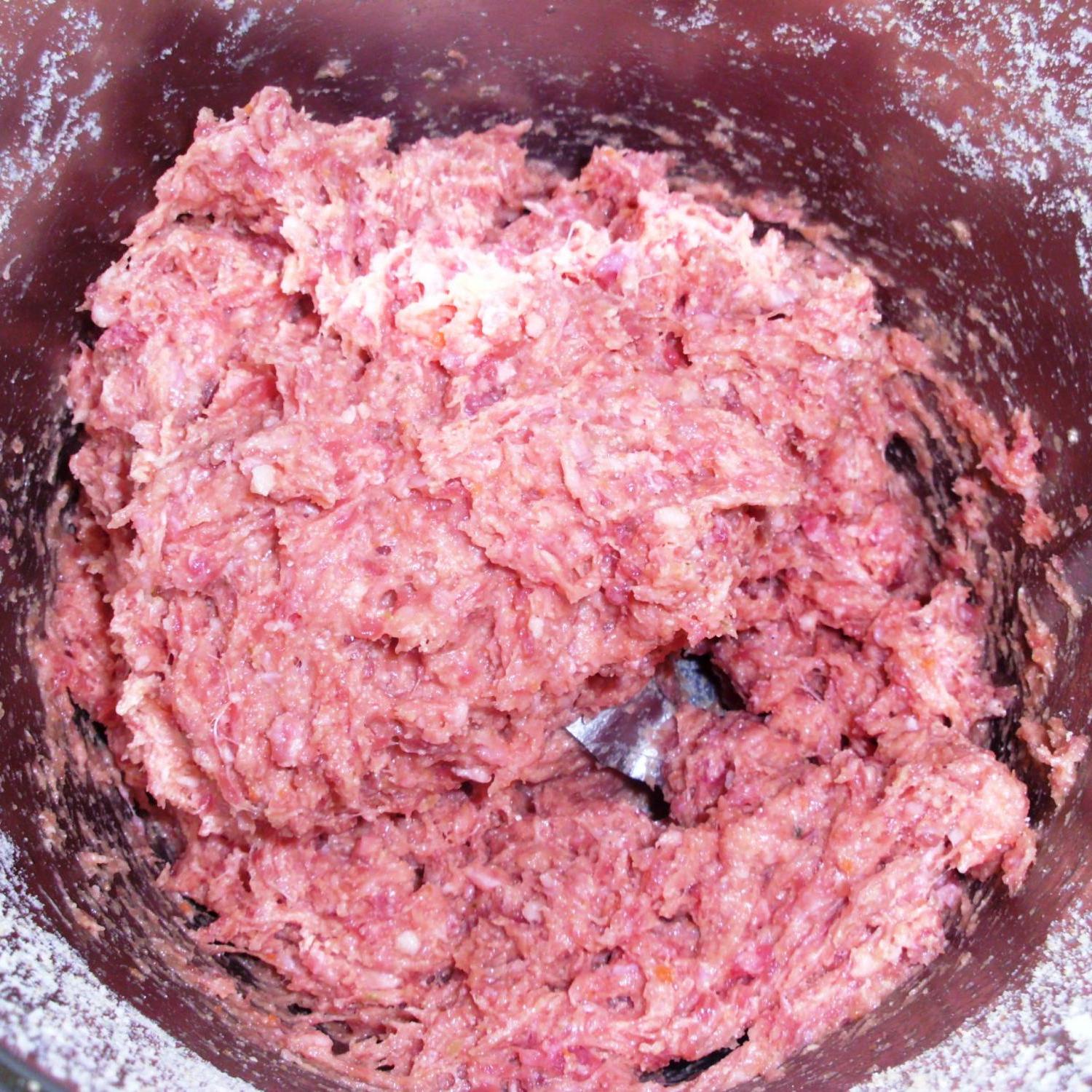 Unire la carne macinata, le uova,sale pepe amalgamare:20 sec.