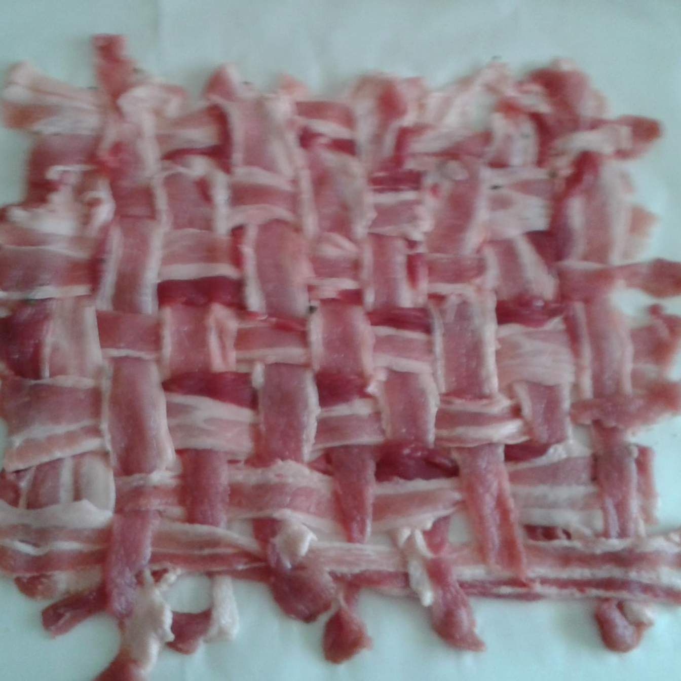 Adagiare 8 fette di pancetta sulla carta forno ben allineate tra loro in senso orizondale e procedere con le restanti fetta a creare un intreccio condire con aromi e sale a piacere (io ho utilizzato un mix per arrosti preparato da me)