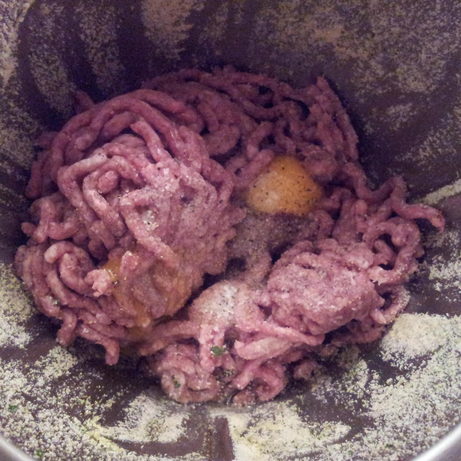 Unire la carne macinata, le uova, il sale, il pepe e amalgamare 20 sec.