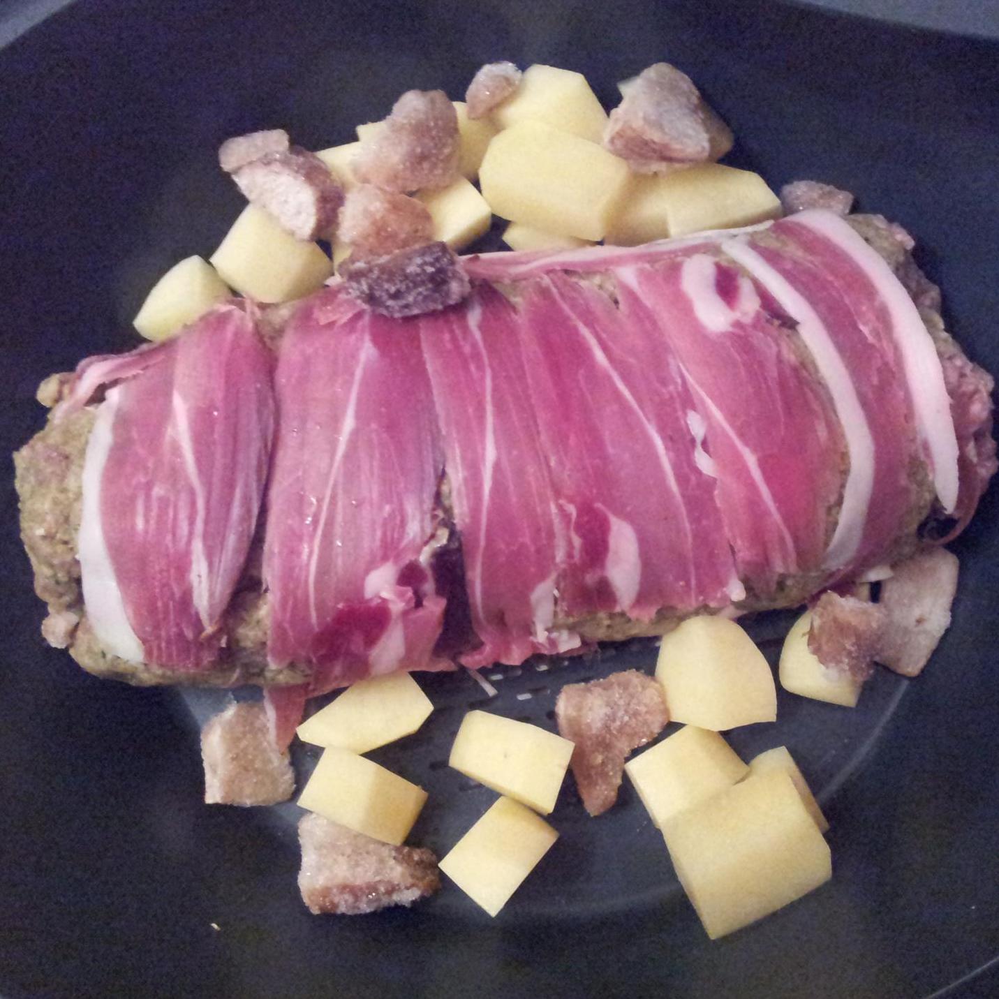 A fine cottura disporre il polpettone e le verdure in una teglia da forno