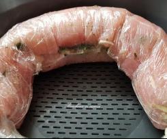 10. Appoggiare l'involtino su una teglia da forno, togliere la pellicola in modo che il sughetto resti nella teglia, irrorare con un filo d'olio e passare sotto il grill 5' per parte.