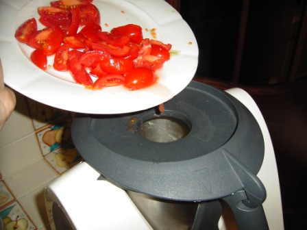 Preparare i pomodorini, tagliarli e condirli a parte, quando il pollo è quasi pronto aggiungere i pomodorini e il prezzemolo rimasto e le verdure che avevamo messo da parte, far cuocere altri 5 min circaSe vi rimane brodosetto e non vi piace, ma vi assicuro che x fare la scarpetta è buonissimo , potete far andare a temp. varoma altri 5 min.