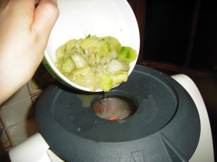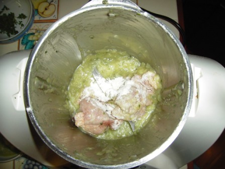 Quando le verdure sono pronte, prima di aggiungere il pollo togliere metà delle verdure metterle da parte e frullare quelle che rimangono nel boccale 5 sec vel 4-5 e raccogliere nel fondo (così viene una salsetta insieme alla farina del pollo....)