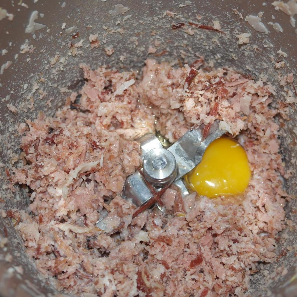Aggiungere l'uovo, il pane ammollato e il latte che non é stato usato per ammollare il pane, mescolare: 10 sec