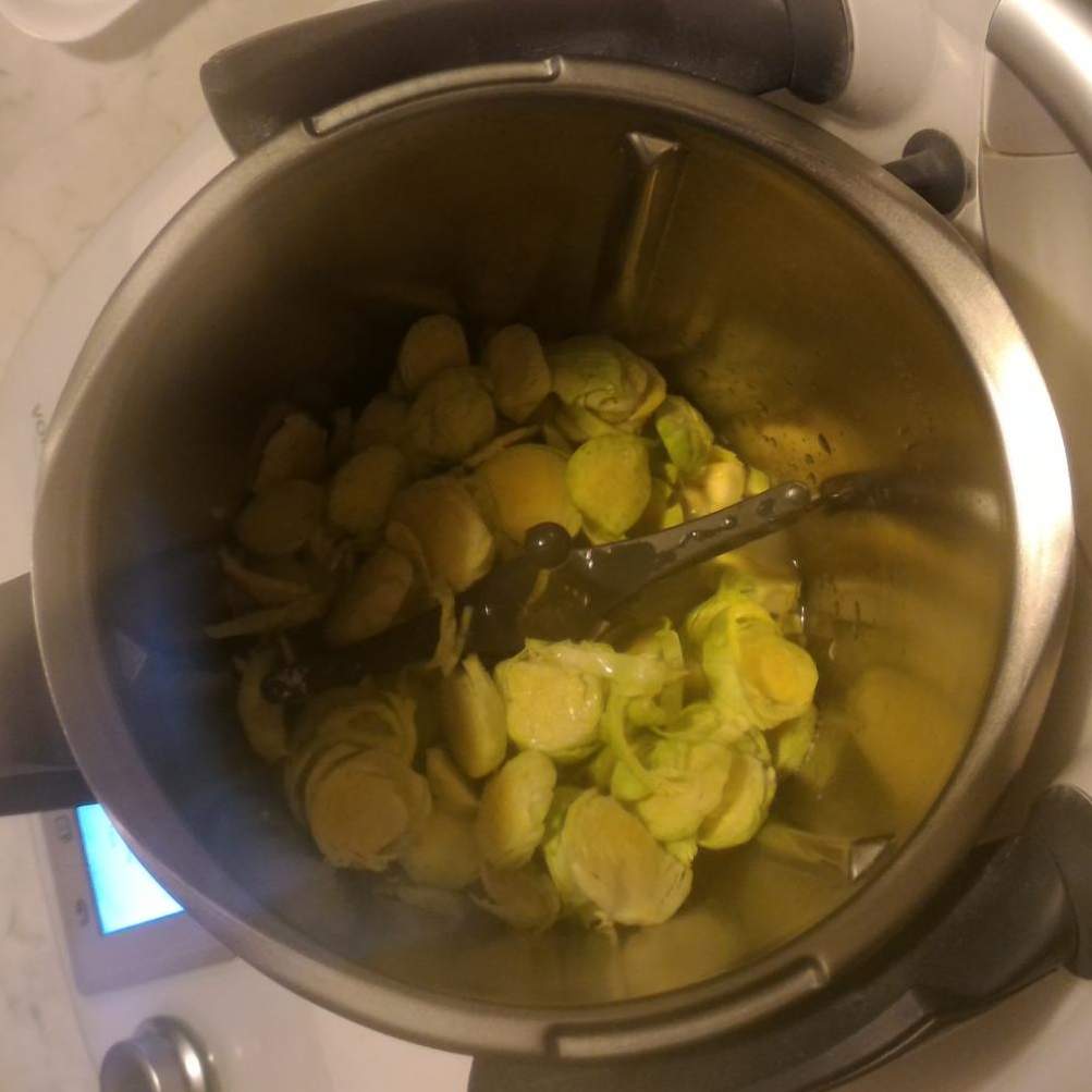 "coperchio chiuso" il burro e montare per 30 sec vel 3. Alla fine del procedimento sistemare la purea di cavolini sul piatto da portata e posizionare le rolatine. Condire a piacere con qualche goccia di crema di aceto balsamico, una macinata di pepe e e un po' d'olio evo.