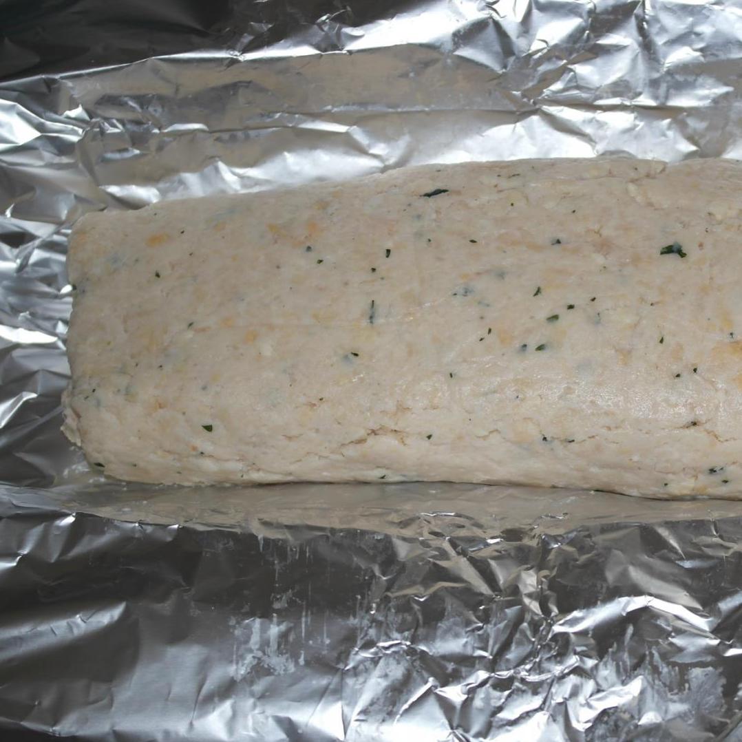 7. Stendere il ripieno sull'impasto di pollo e arrotolare.
