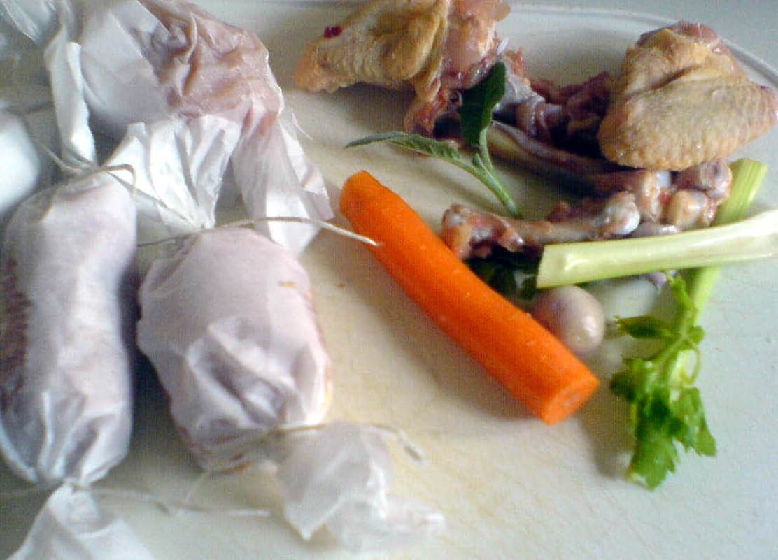 wlapappa, siccome io le preparo comperando un pollo intero, nel brodo metto anche le ali e tutta la carcassa, che poi spolpo, unisco delle verdure scottate un attimo nell'acqua e aceto e della maionese