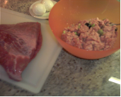 1. Lessate le uova. Inserite il parmigiano e tritate qualche secondo a Vel. 5/6, unite l’uovo, la carne macitana la salsiccia, sale e pepe e amalgamate 10 /15 sec. Vel. 5/6. Unite formaggio tenero, mortadella e prosciutto cotto a pezzetti e ripetete a Vel. 4/5 Antiorario, togliete e ponete in una ciotola.