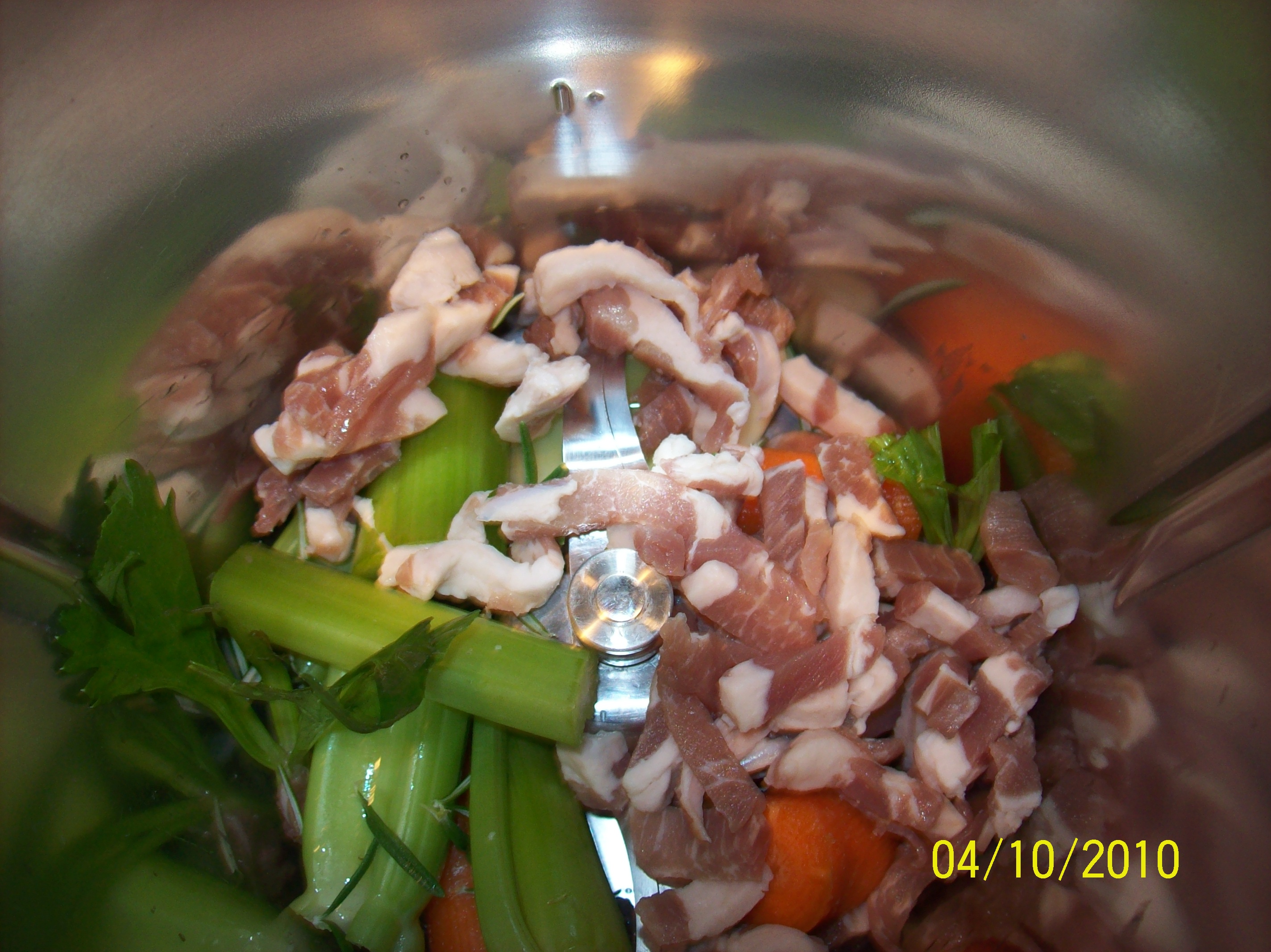 "coperchio chiuso" aglio sedano carota rosmarino e pancetta tritare per 10 sec vel 7unire l'olio i pezzi di coniglio togliendoli dalla marinata tenerli da parte insaporire 12 min tem.varoma
