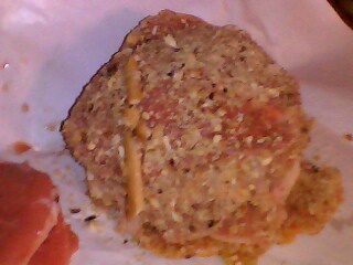 usare il composto di grissini e noccione per impanare la fettina, salare e friggere la cotoletta