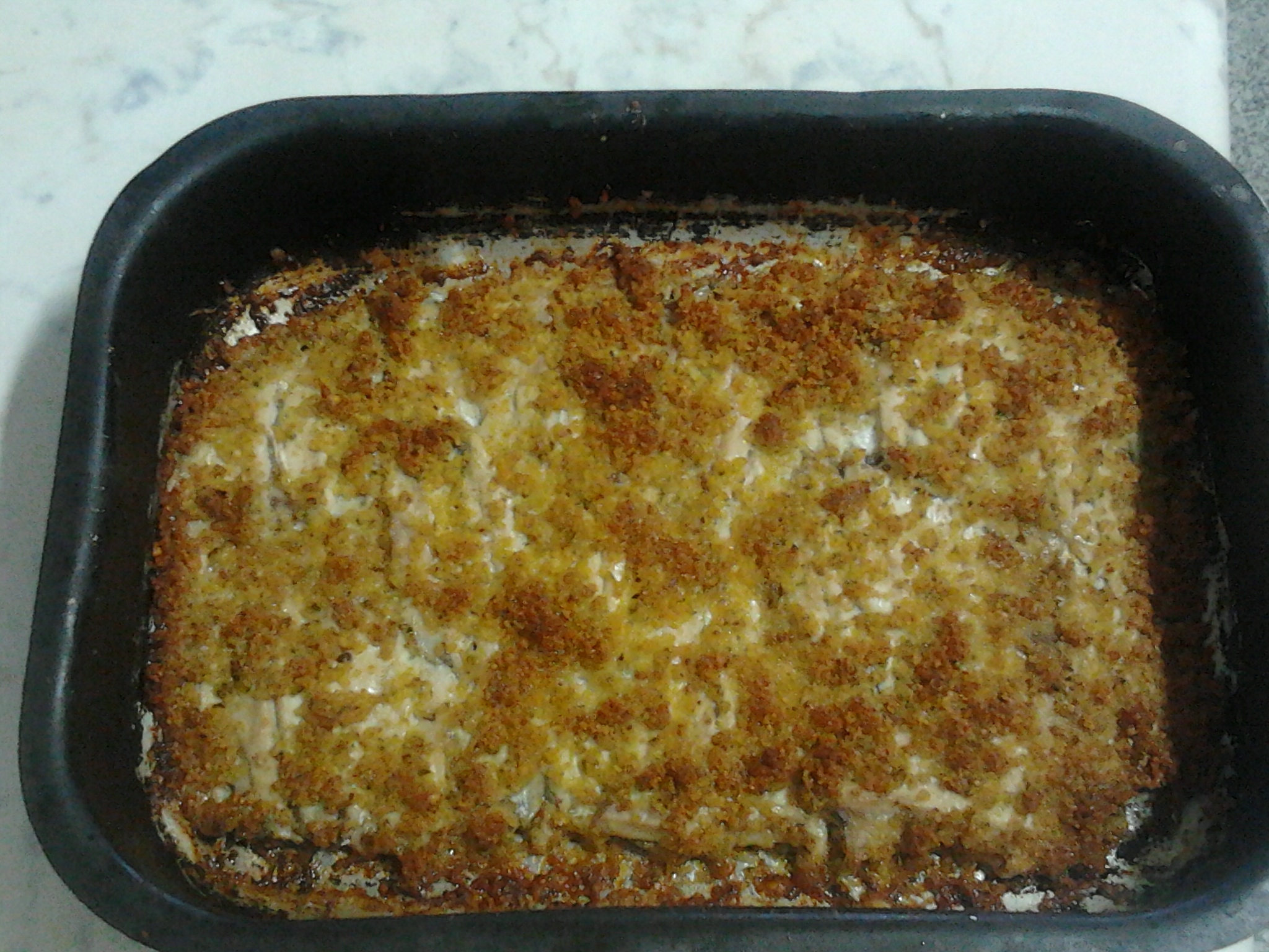 - Versare metà del composto sulle alici in teglia, ricoprire con le altre alici e terminare col trito rimasto.
