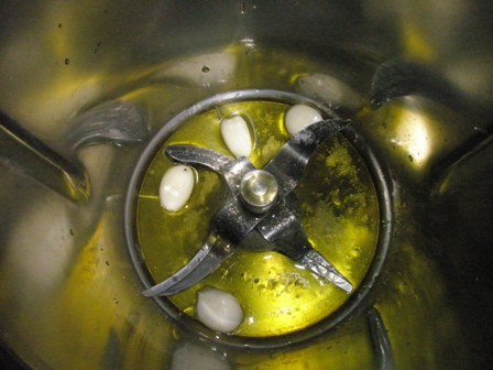 INSERIRE NEL BOCCALE AGLIO 2 COLPI TURBO, RIUNIRE CON LA SPATOLA ED AGGIUNGERE LE UOVA,SUCCO DI LIMONE,SALE,CHIUDERE CON IL COPERCHIO E MISURINO