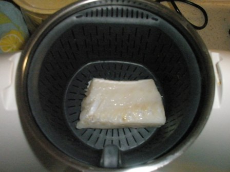 METTERE NEL BOCCALE L'ACQUA,SALE,ALLORO, METTERE IL BACCALà NEL CESTELLO E CUOCERE 12 MINUTI,ANTIORARIO,VAROMA