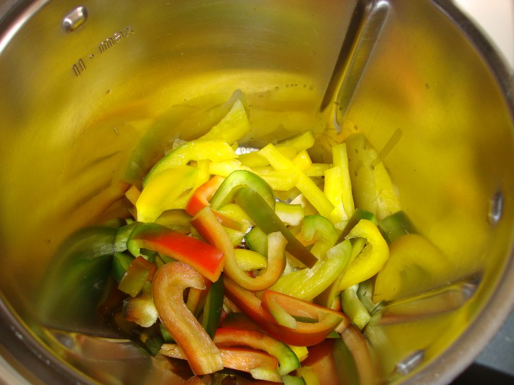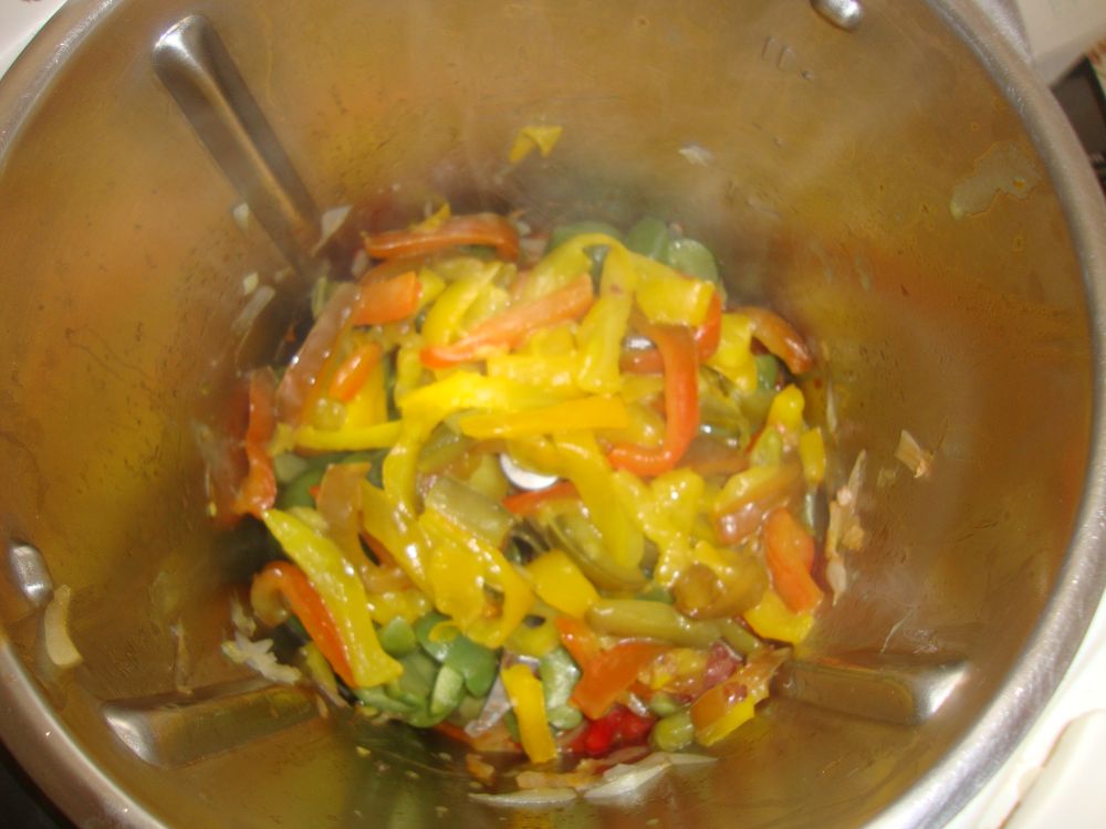 Unire i peperoni al sugo e mescolare 10 sec vel. 1