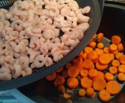- Mettere nella campana del varoma le carote pulite e tagliate a rotelle, nel vassoio mettere i gamberetti puliti.