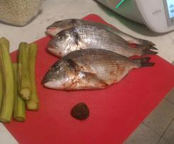Filetti di orata al tartufo nero e crema di gambi di carciofi