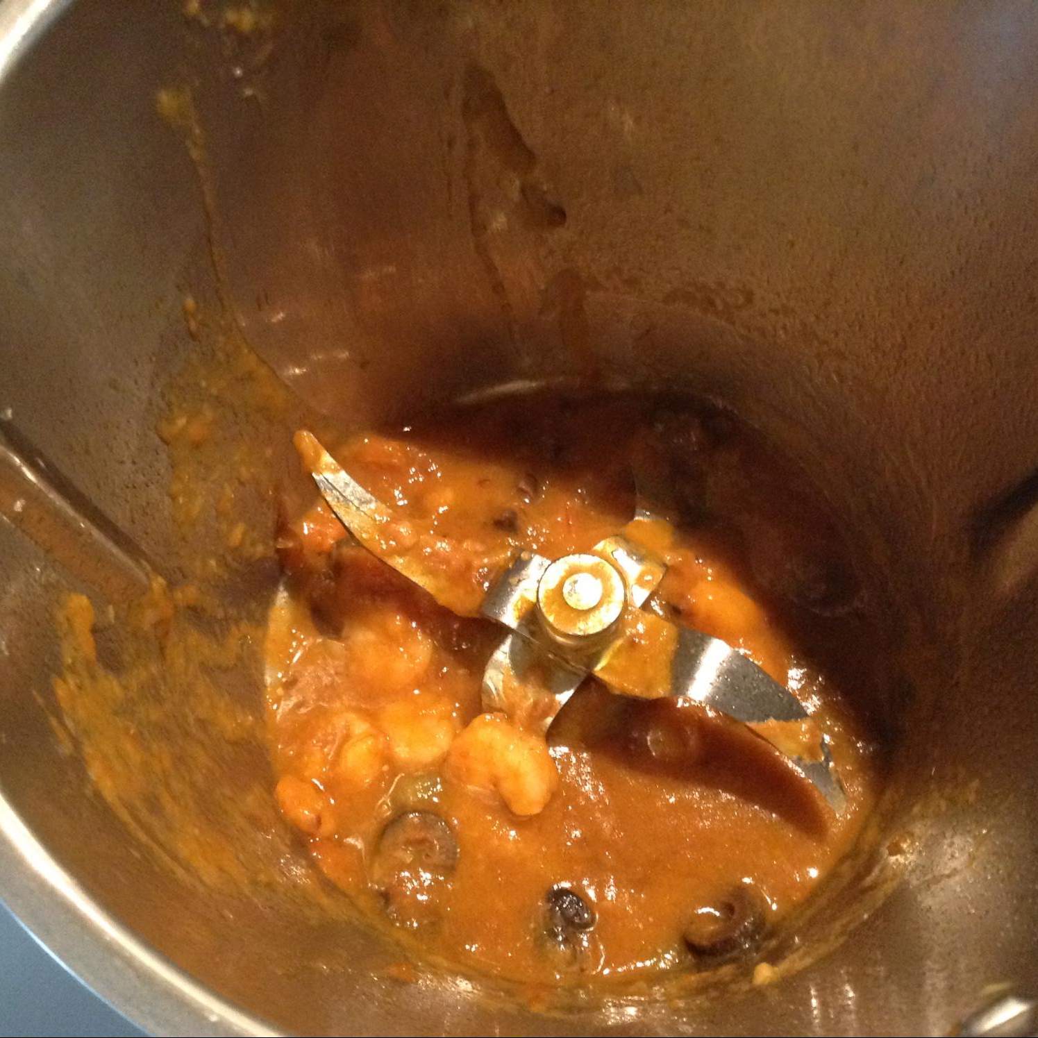 -Trascorso il tempo di cottura, l'acqua si sarà asciugata e rimarrà il sugo, a questo punto togliere il varoma, aprire il coperchio del coperchio chiuso"coperchio chiuso"  e aggiungere i gamberi, cuocere: 3 min 100gradi vel 1 antiorario"antiorario"