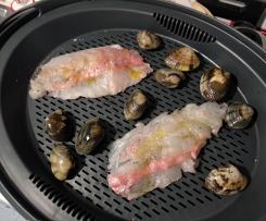 - 4. Posizionare i filetti di orata e le vongole veraci sul vassoio del Varoma. Salare, pepare e condire con un filo d'olio. Mettere il coperchio e posizionare il varoma sul coperchio del