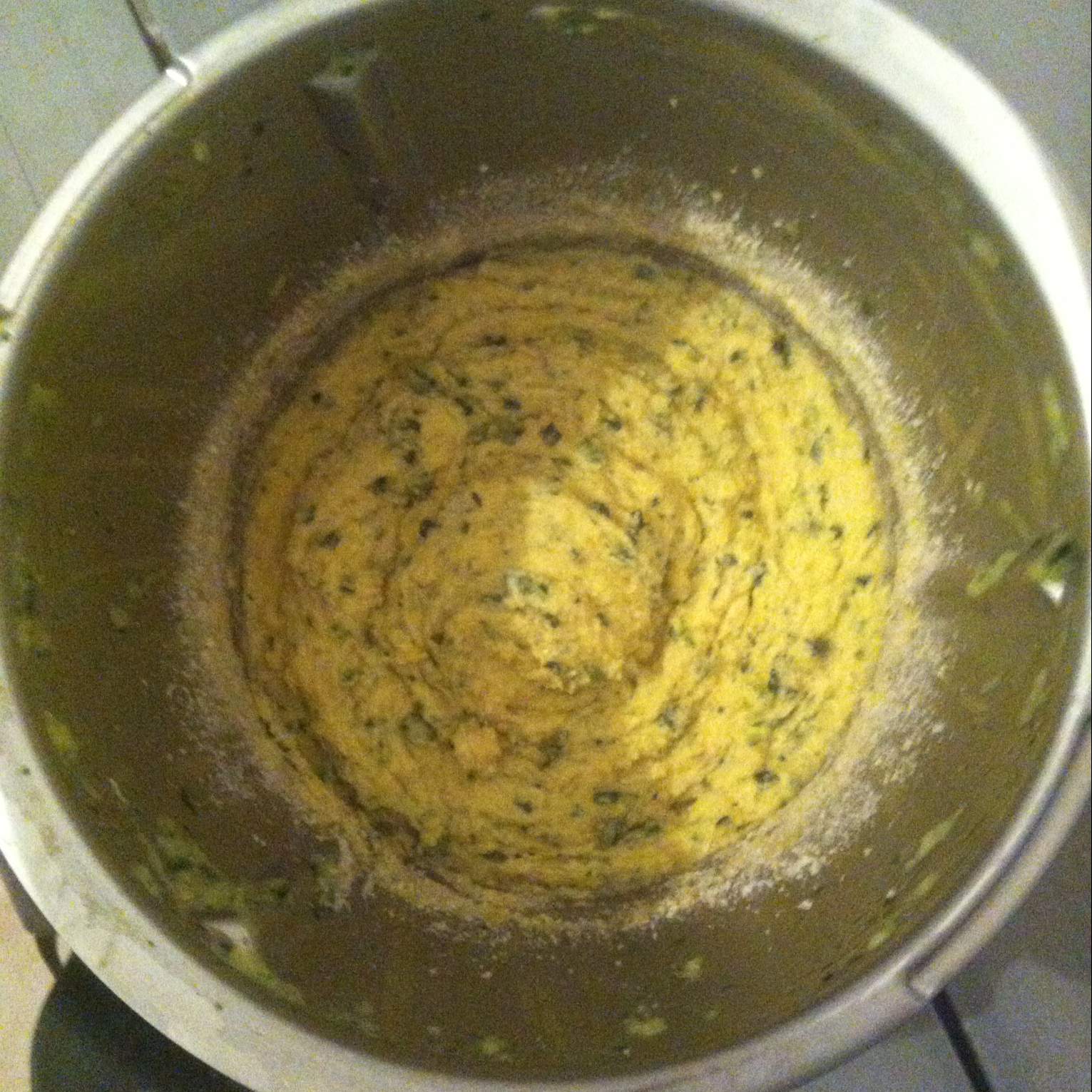 Riunire sul fondo con la spatola. - Aggiungere alle zucchine tonno, uovo, Parmigiano Reggiano, ricotta, pane e mescolare: 15 sec./vel. 4.