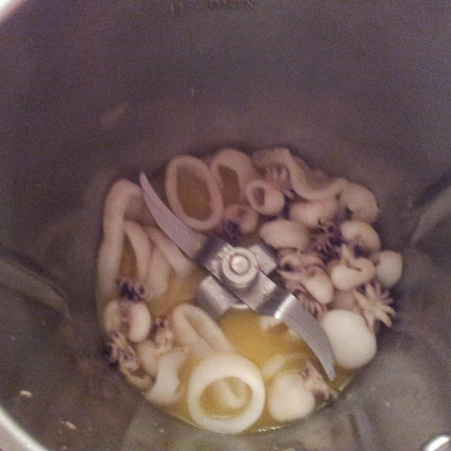 Aggiungere le seppioline e i calamari 5 min./Varoma/
