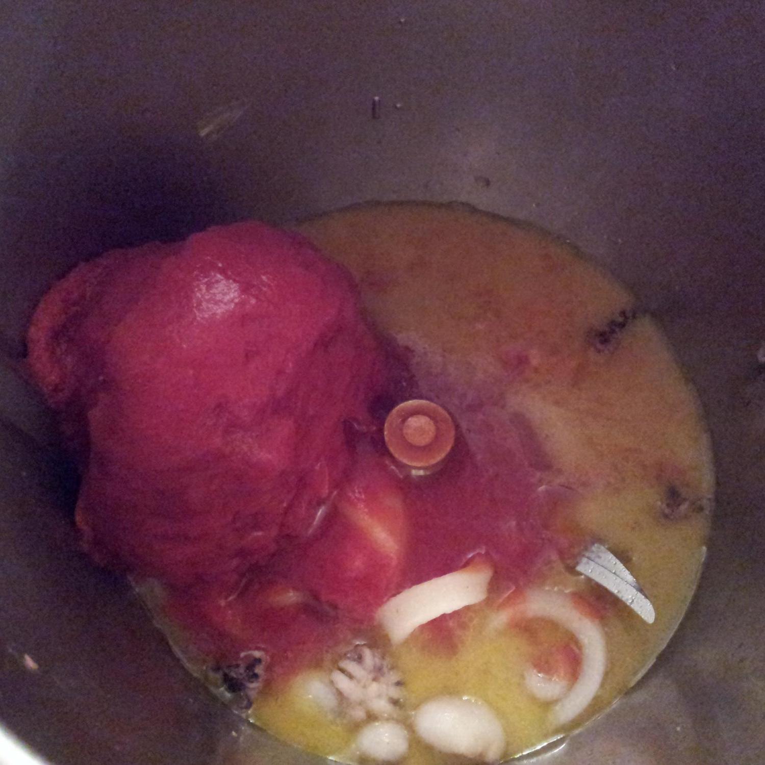 Unire la passata di pomodoro. Salare e Pepare. Cuocere 30 min/100°/