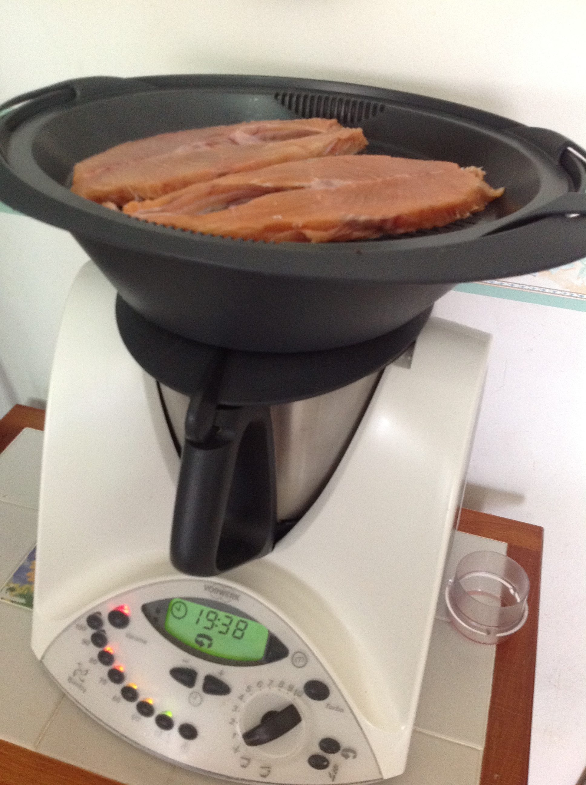 "coperchio chiuso" e posizionare il varoma con le fette di salmone e cuocere 20 min temperatura varoma
