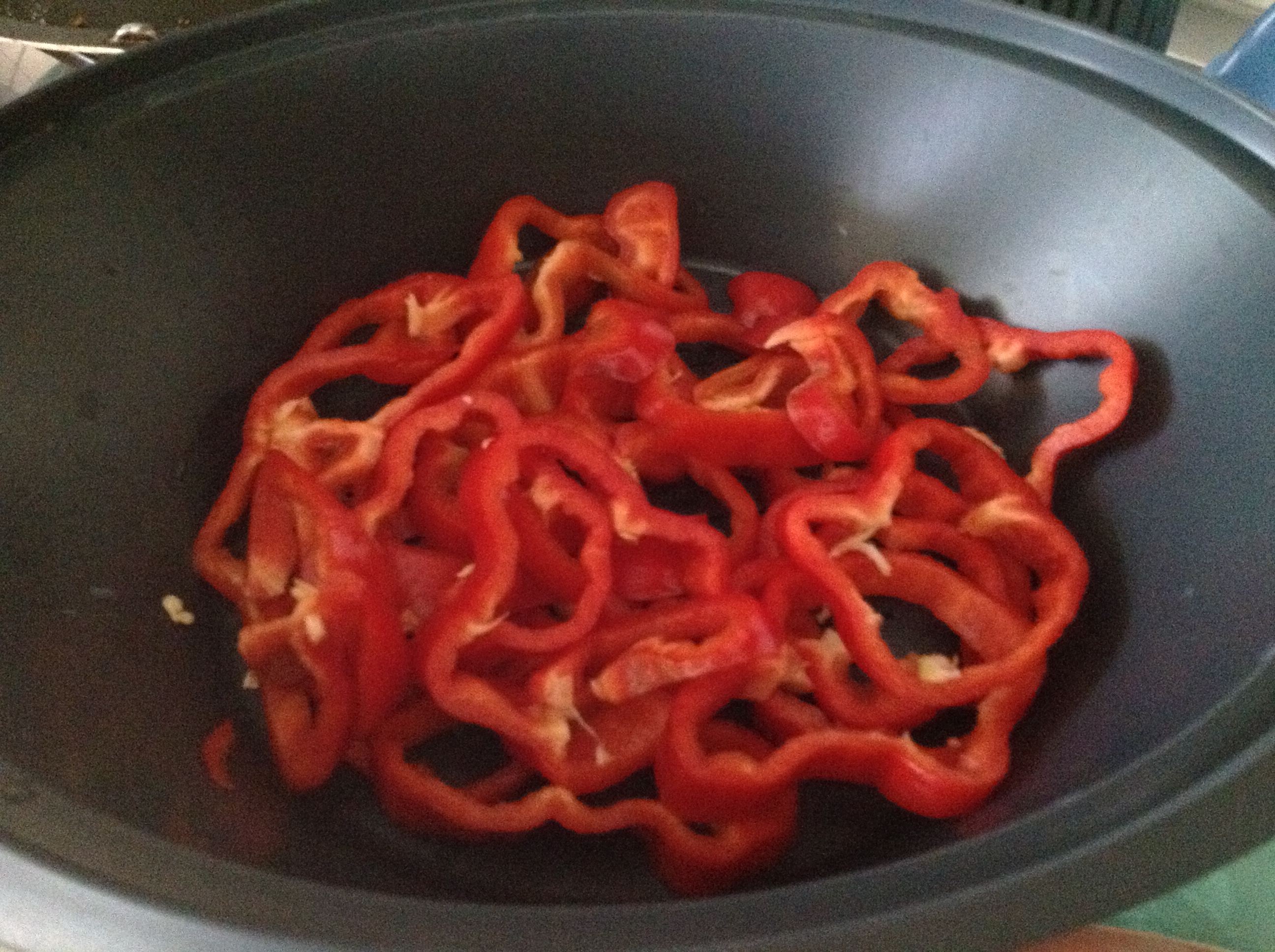 "coperchio chiuso" mettere l'olio e soffriggere 3 min 100*vel 1,aggiungere i peperoni tagliati a listarelle rosolare3 min