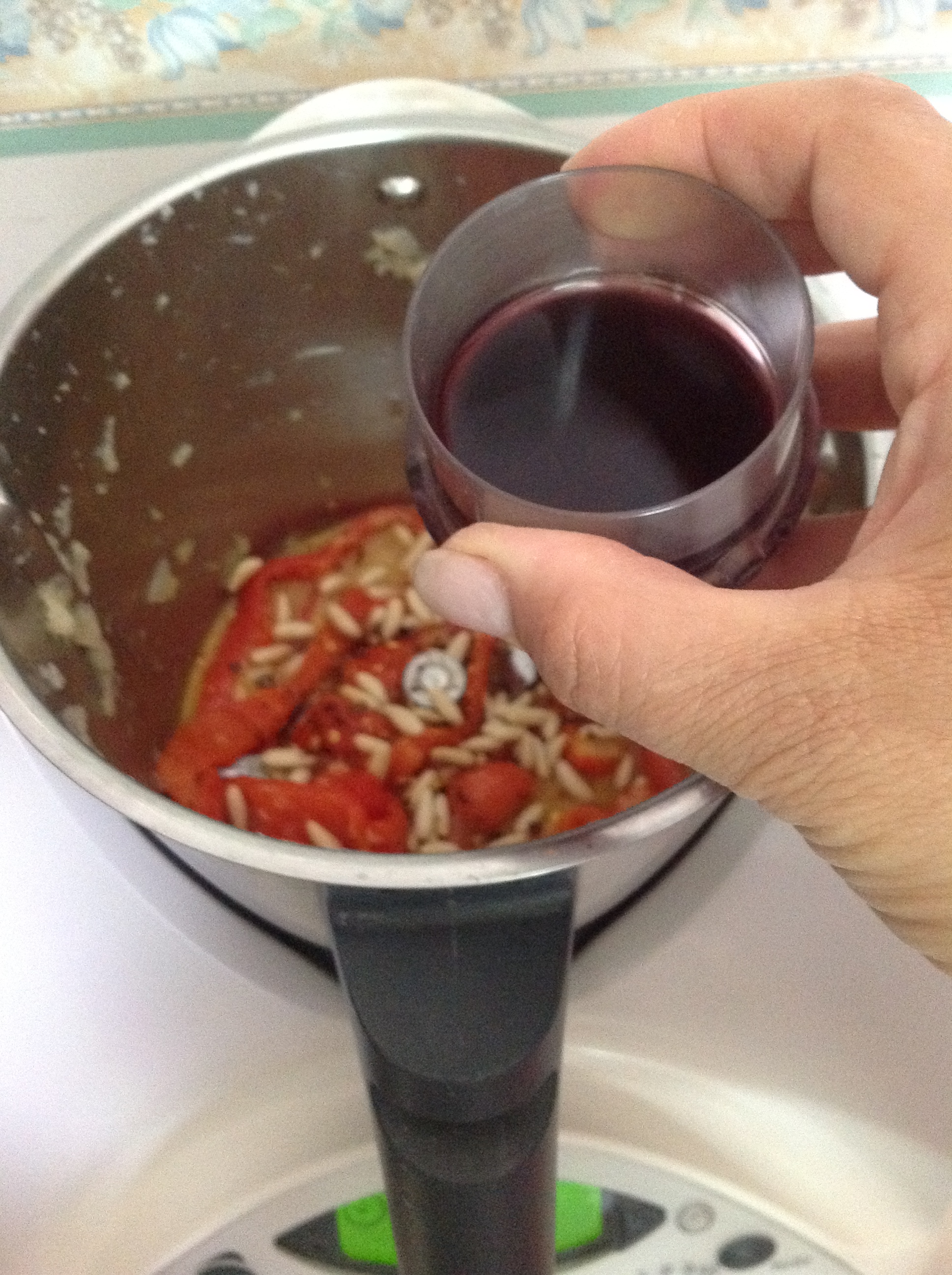 "velocità soft" ,aggiungere i pinoli tenendone alcuni da parte per decorare,peperoncino sale qb lo sherry e l'acqua chiudere il