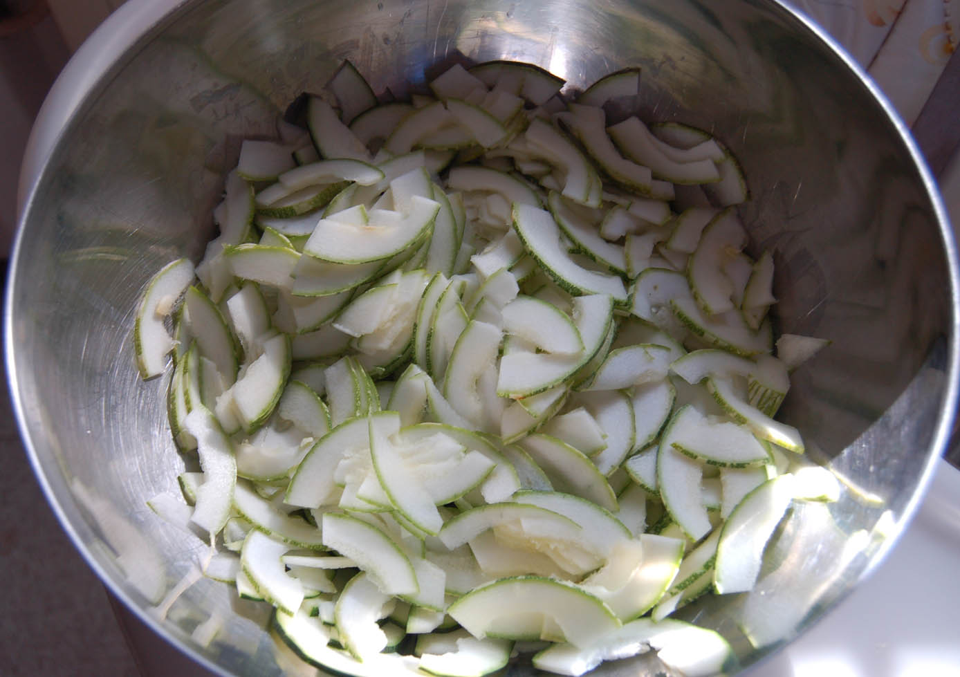 1. Tagliare le zucchine a fettine sottilissime con una mandolina, metterle in una ciotola e salarle.