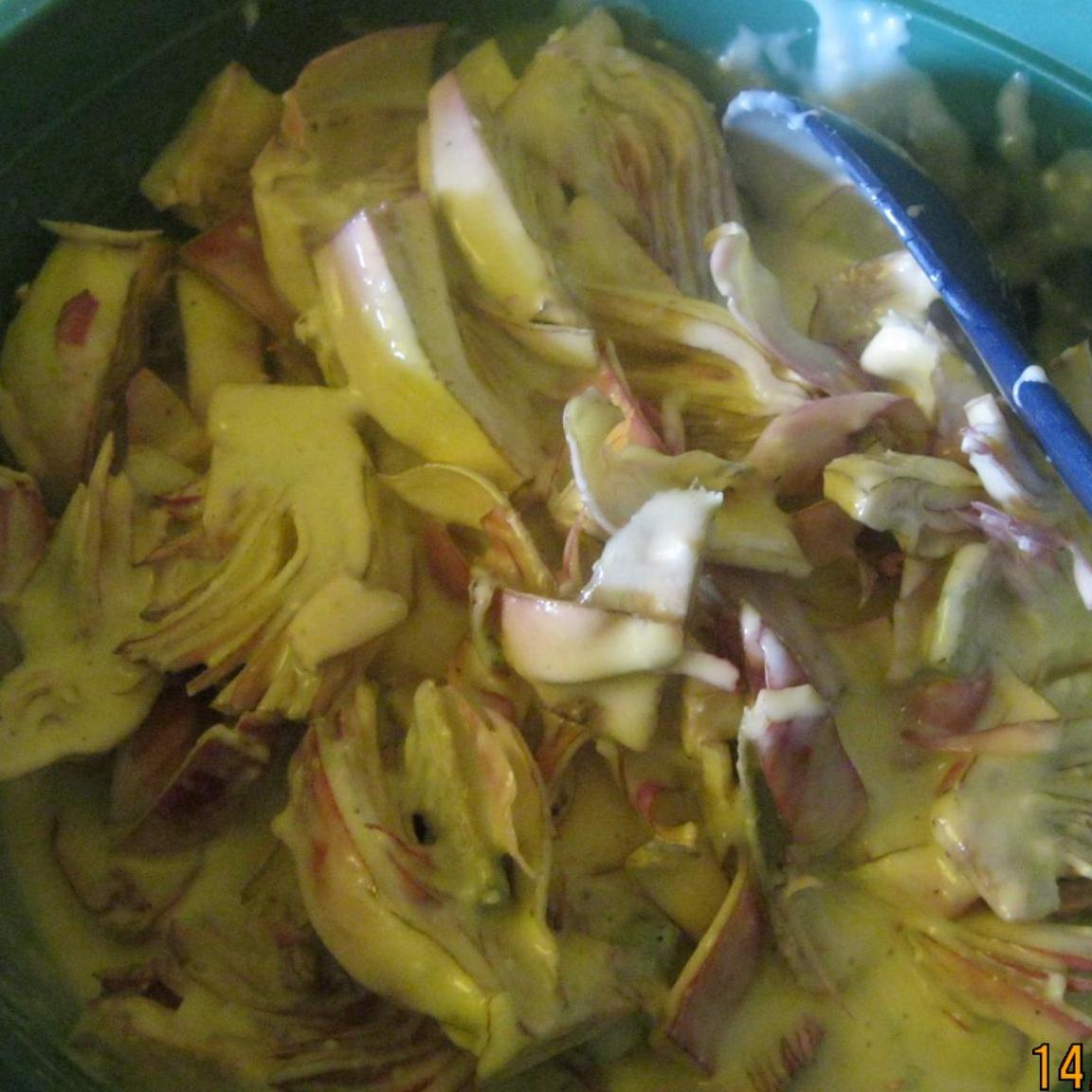 Scolare i carciofi , metterli in una ciotola e aggiungere la pastella .