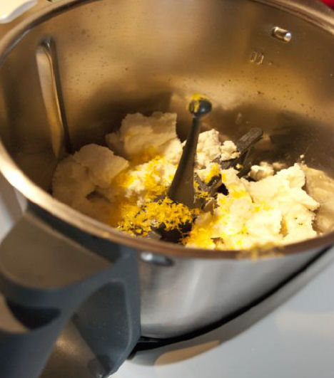 1. Posizionare la farfalla e aggiungere tutti gli ingredienti necessari per la preparazione delle quenelles di ricotta dolce, montare: 2 min/vel. 4. Mettere da parte la crema ottenuta e ripulire il boccale