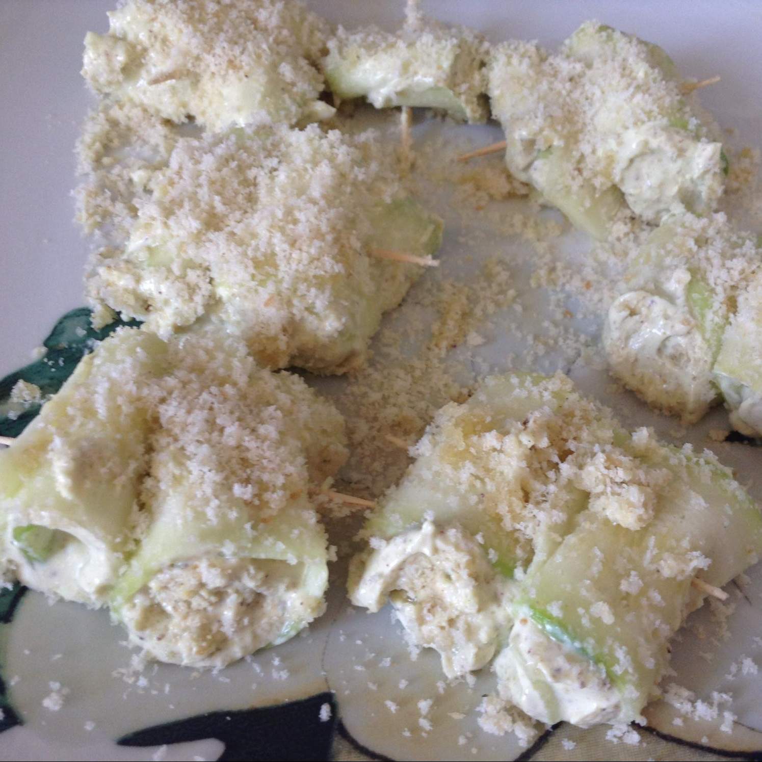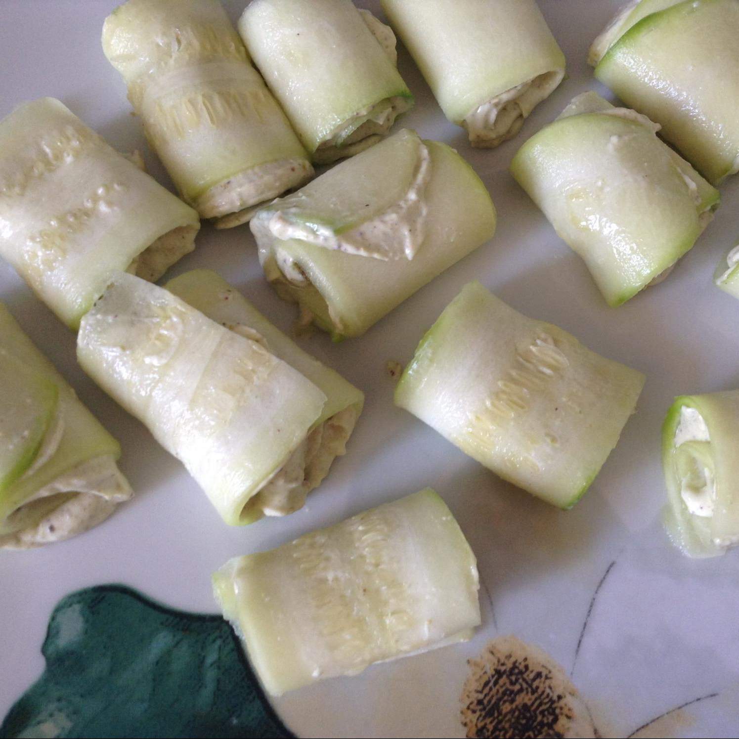 Arrotolare la fetta di zucchina e adagiarle su di un piatto, esauriti gli ingredienti mettere il piatto a rassodare in frigo, prima di cuocerle.