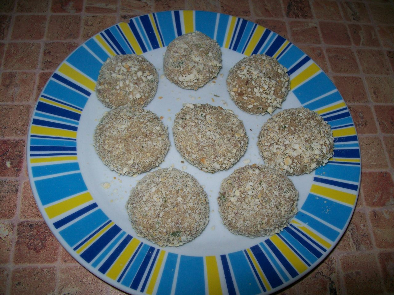"coperchio chiuso" : 4-5sec / vel 7 (non ridurlo in farina! )Formare le polpette, passarle nei crackers friggerle.
